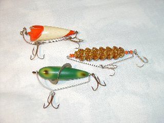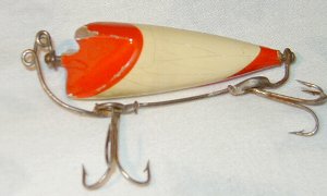 うひひひひ!60年前の天才が作ったスーパー・カルト・ルアー。バイト−エム−バイトだ!これも、今風に言えばガウディみたいなルアー。ボディースタイル適には、ガウディーPOPアート風だけどでもちがうの。ボディーの中心に針金じゃなくて、スクリューだけで留まってて、それをワイヤーワークで仕上げてあるの。