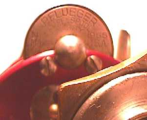ノービーは、フルーガーのダイレクトドライブリールでは、アルミ製の軽量モデル。さらにレッドはそのTOPモデル。でも、その上にフリースプールのモデルは、57年か58年頃に1年だけ発売された貴重なモデル。たいへん軽量で、使いやすいリール。でも、ダイレクトドライブなんだ。手裏剣みたいなドラッグ様のモノがあるけど、ドラッグじゃないの。