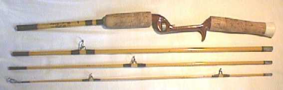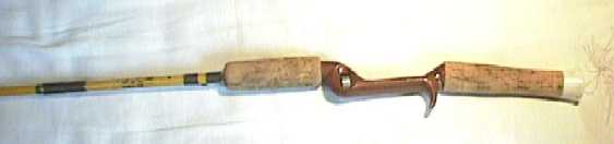 えー、最初はただフロントコルクのグリップに惹かれて手に入れました。見ての通りのパックロッドだけど、このグリップがまた格好いいでしょ。ライト&マッギルは多くのパックロッドモデルを持っていました。本当は、ケースなんかもあるはず何だけど、あんまりケースのチャックがきちんと閉まるのってないんだよね。日本人があんまり知らないので、けっこう安く手に入りしかも楽しいロッド。
